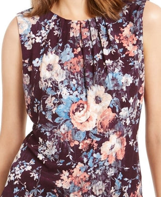 Blusa Calvin Klein Feminina Estampada Floral Plissada Roxa Tamanho P