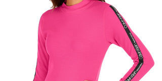 Camiseta Calvin Klein Feminina Performance Logo Listrada Gola Mock Rosa Tamanho Médio