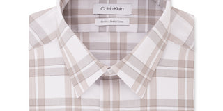 Camisa social masculina Calvin Klein com estampa de logotipo, corte slim, gola elástica, bege, tamanho 14,5 x 32 x 33
