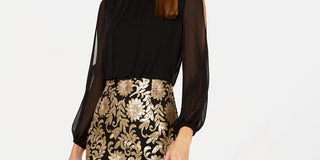 Vestido Calvin Klein Feminino Manga Longa Estampado Floral Lantejoulas Gola Joia Comprimento Joelho Preto Tamanho 16
