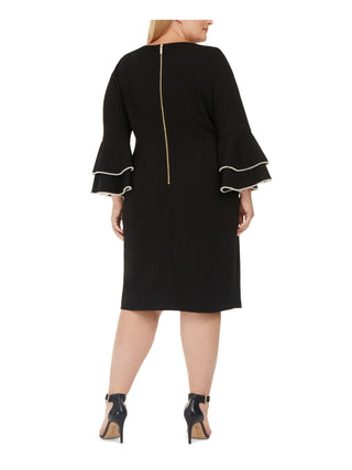 Vestido de festa Calvin Klein feminino com zíper e manga sino, gola redonda, comprimento até o joelho, preto, tamanho 14W