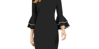 Vestido tubinho com manga sino e detalhes embelezados Calvin Klein feminino, preto, tamanho 6