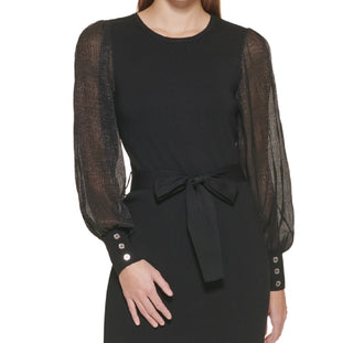 Vestido Calvin Klein Feminino Manga Chiffon Preto Tamanho Médio