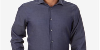Camisa social Calvin Klein masculina slim fit com gola flexível elástica, azul, tamanho 17x32-33-XL