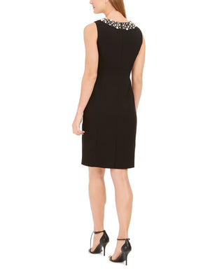 Vestido justo com acabamento em pérolas falsas Calvin Klein feminino, preto, tamanho 2