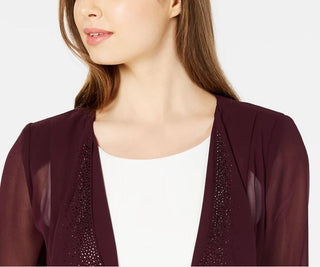 Calvin Klein Manga Ilusão Feminina com Strass Roxo Tamanho Grande
