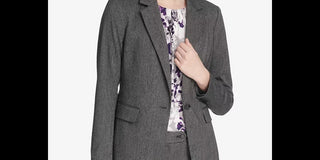 Jaqueta Calvin Klein Feminina Herringbone com Um Botão Cinza Tamanho 12 Petite