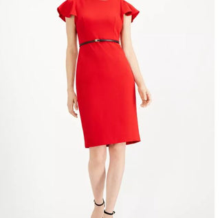 Vestido Calvin Klein Feminino com Cinto e Mangas Babadas, Vermelho, Tamanho 8