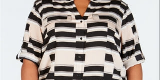 Blusa casual floral plus size Calvin Klein feminina com botões, vermelha, tamanho 1X