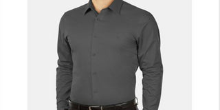 Camisa social masculina CALVIN KLEIN de algodão com gola cinza e ajuste slim, tamanho 2XL