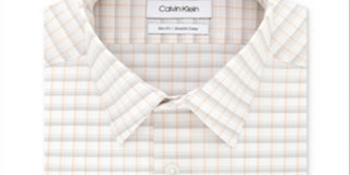 Camisa social masculina Calvin Klein Slim Fit com gola elástica e xadrez, laranja, tamanho 15,5 x 34 x 35