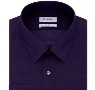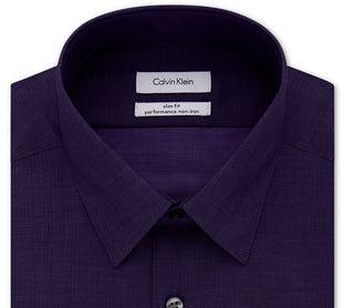 Camisa social Calvin Klein masculina slim fit, sem passar roupa, gola espinha de peixe, roxa, tamanho 17-34-35