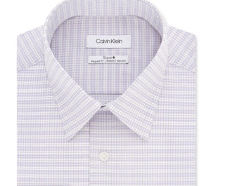 Camisa social masculina Calvin Klein Steel Classic/Regular-Fit, sem necessidade de passar, com estampa elástica, xadrez, roxa, tamanho 17x34-35