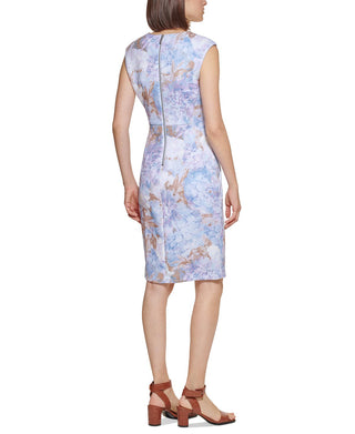 Vestido tubinho floral Calvin Klein feminino, decote em V, azul, tamanho 16