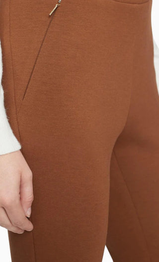 Calça social feminina Calvin Klein com cintura plissada e ajuste slim, marrom, tamanho 6