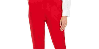 Calça social feminina Calvin Klein com cintura plissada e ajuste slim, vermelha, tamanho 4