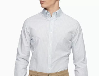 Camisa social masculina Calvin Klein com ajuste extra fino e estampa elástica com regulagem de temperatura, azul-marinho e branco, tamanho GG