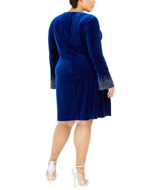Vestido Calvin Klein Plus Size Feminino de Veludo com Manga Sino e Brilho Azul Tamanho 18W