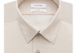 Camisa social masculina Calvin Klein Steel Slim Fit, sem passar roupa, com gola espinha de peixe, tamanho marrom, 16,5 x 32-33