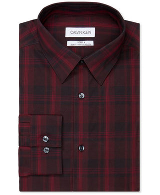 Camisa social Calvin Klein masculina Steel Regular Fit Stain Shield Performance vermelha tamanho 15x32-33