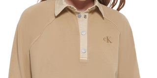 Calvin Klein Polo de algodão feminino, marrom, tamanho extragrande