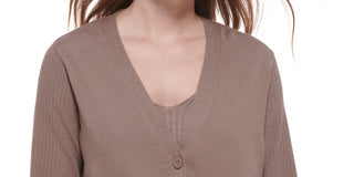 Calvin Klein Cardigan Feminino Manga Canelada Botões Frontais Marrom Tamanho Grande