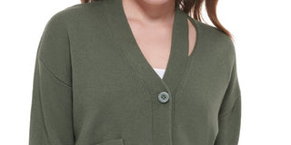 Calvin Klein Jeans Cardigan Feminino com Decote em V e Recorte Verde Tamanho GG