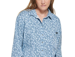 Calvin Klein Jeans Camisa Boyfriend Feminina Manga Longa Estampa Animal Cinza Tamanho Médio