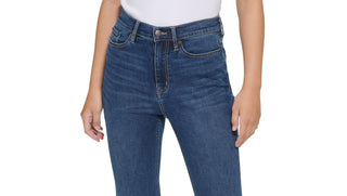 Calça jeans feminina Calvin Klein Jeans cintura alta flare com fenda azul tamanho 32