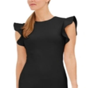 Vestido Calvin Klein Feminino com Mangas Babadas e Bainha Preto Tamanho 4 Petite