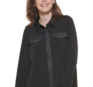 Blusa Calvin Klein Feminina Manga Longa com Botões Frontais Preta Tamanho Grande