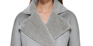 Calvin Klein Jaqueta de inverno feminina com bolsos, couro sintético, gola de pele de carneiro sintética, botão, cinza, tamanho extrapequeno