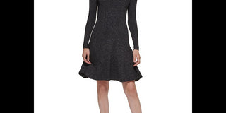 Vestido suéter feminino Calvin Klein com gola falsa, preto, tamanho médio
