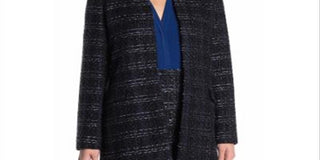 Calvin Klein Jaqueta Longa Aberta Feminina Metallic Tweed Azul Marinho Multi Tamanho 4