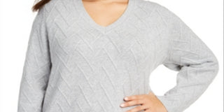 Suéter feminino Calvin Klein Plus com estampa Chevron e gola V cinza, tamanho -0X