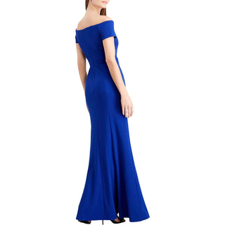 Vestido de festa longo com zíper e manga curta, estilo flare, estilo ombro de fora, da Calvin Klein, tamanho 4, azul