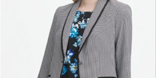 Calvin Klein Blazer Feminino Estampado com Um Botão Cinza Tamanho 12