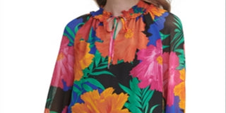 Blusa Calvin Klein Feminina Estampada com Amarração no Pescoço, Preta, Tamanho Grande