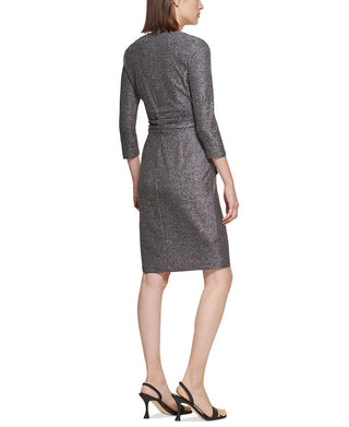 Vestido Calvin Klein Feminino com Decote em V e Malha Glitter Cinza Tamanho XS