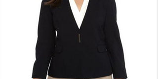 Calvin Klein Blazer Feminino Sem Gola e Botão Único Azul Marinho Tamanho 16