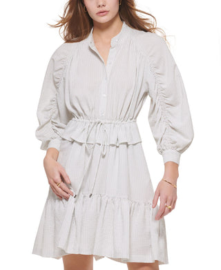 Vestido-camisa Calvin Klein feminino com amarração na cintura e manga franzida, branco, tamanho extragrande