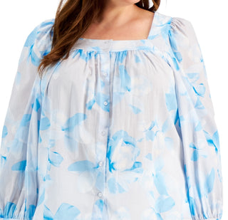Blusa Calvin Klein Feminina Manga Plissada Chiffon Botões Frontais Preta Tamanho Grande