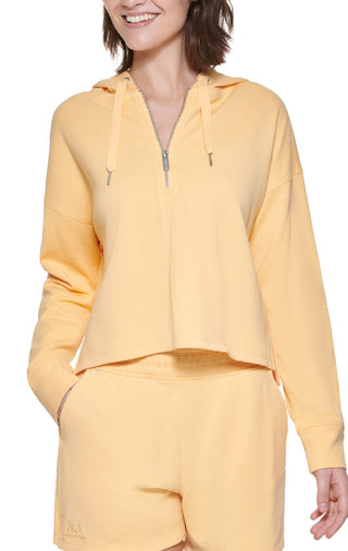 Calvin Klein Moletom com capuz feminino meio zíper amarelo tamanho X-S