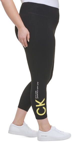 Calça legging feminina Calvin Klein CK Logo cintura alta 7/8 amarela tamanho 2X