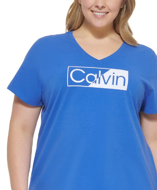 Camiseta Calvin Klein Feminina com Logotipo Azul Tamanho 1X