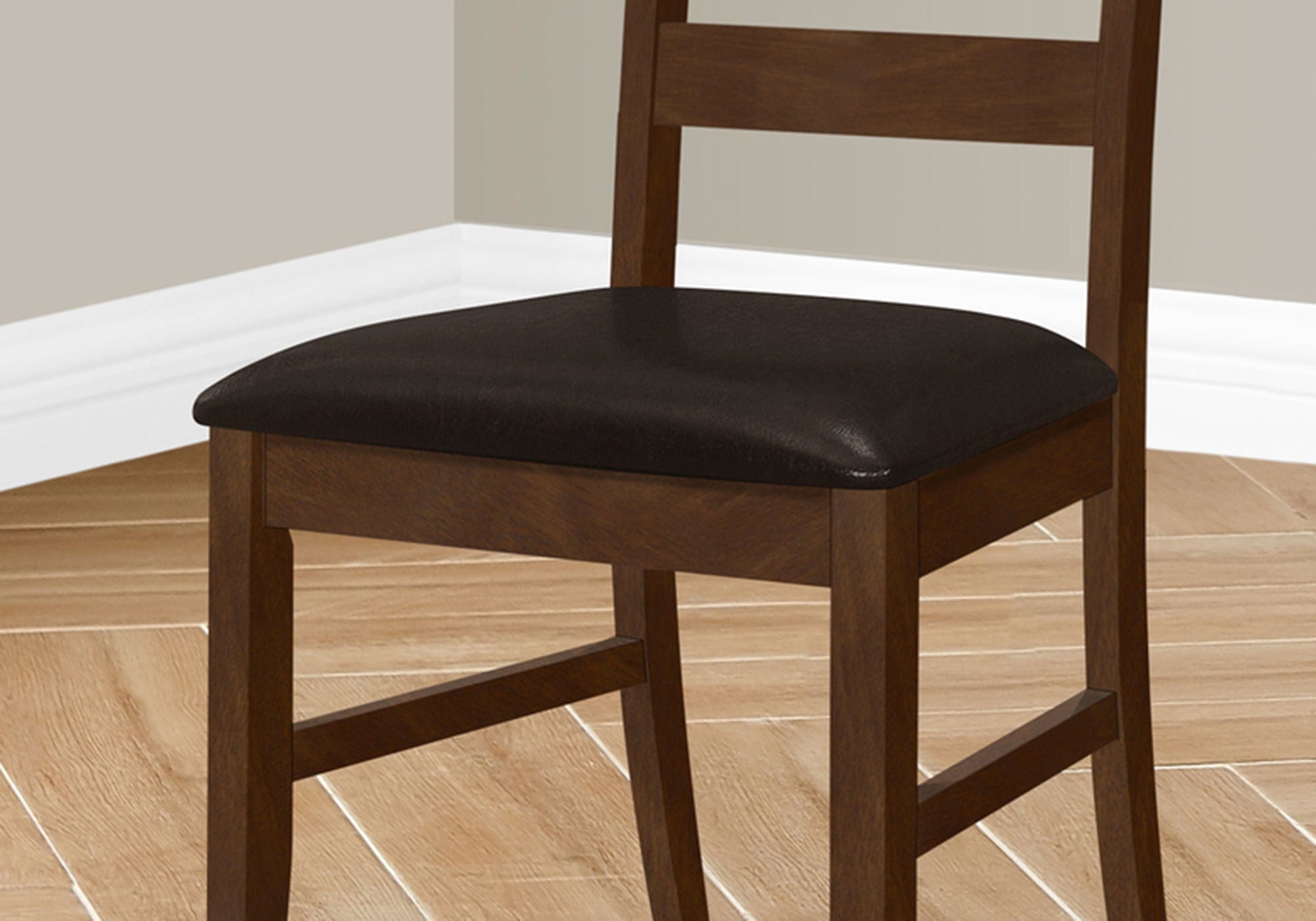 - Faux leather upholstery in brown for an elegant appearance