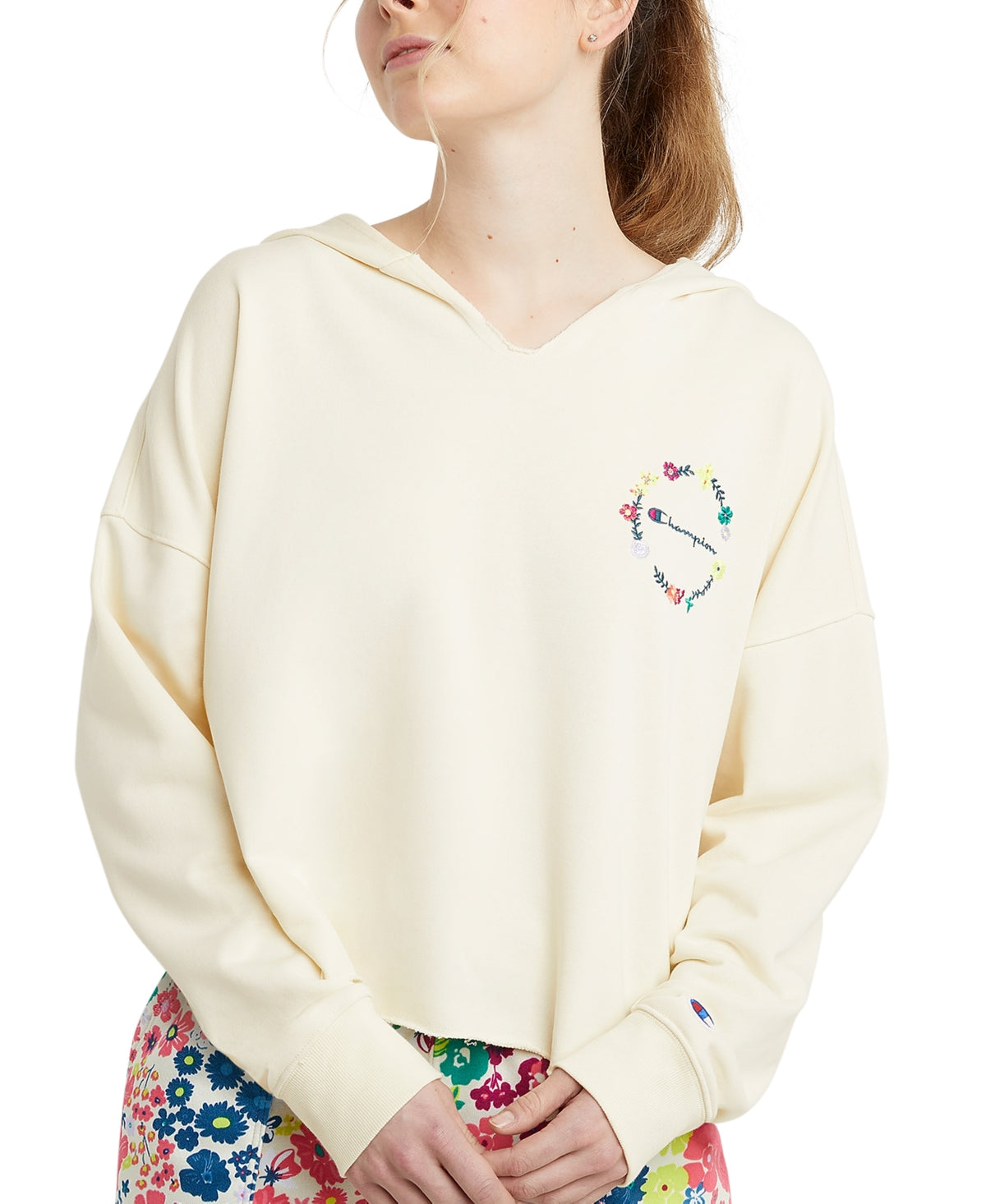 Renove seu estilo para o clima frio com este elegante moletom com capuz Campus da Champion. | Comprimento aproximado de 22 | Gola em V | Punhos canelados; bainha com acabamento cru; fita estampada na parte de trás do pescoço; icônico patch 'C' na manga esquerda | Mangas compridas | Algodão/poliéster | Lavável à máquina