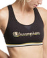 Marque o ritmo com este top esportivo de médio impacto da Champion, projetado com costas nadador recortadas e propriedades inteligentes de absorção de umidade. | INSPIRADO PARA; Ciclismo | Corrida e academia | Sutiã esportivo de médio impacto ideal para musculação e aeróbica leve | Tecido DOUBLE DRY® que absorve a umidade | Decote redondo com recorte em V em mesh; logo gravado na frente; bainha elástica; costas nadador com detalhe recortado | Algodão/elastano