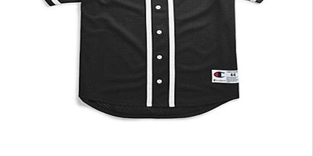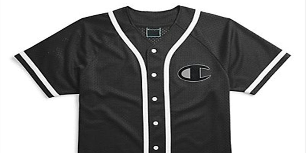Você está pronto para a ação no jogo de softball da empresa com esta camisa de beisebol respirável da Champion | um visual clássico em malha arejada com orifícios abertos. | Gola em V; fecho de botão na frente | Logotipo na frente | Malha completa | Poliéster | Lavável à máquina