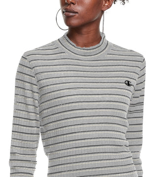 Camiseta feminina Champion Campus listrada com gola falsa, cinza, tamanho grande